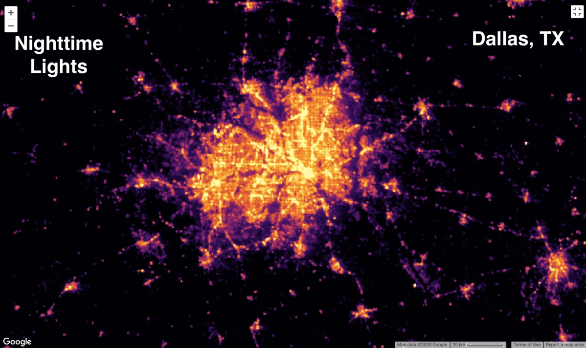 To reduce the bias posed by large, sparsely populated counties and precincts, I propose a straightforward solution: filtering the electoral data to only include populated areas using satellite-derived nighttime lights data. The premise is simple: populated areas are illuminated at night. The more people there are in an area, the brighter it is. Below is a technical overview of the methodology: